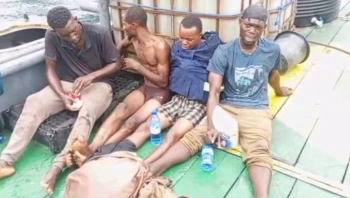 The rescued individuals, James John, Favour Efe, Kingsley Williams, and Kingsley Mathew, have since been handed over to the Nigerian Navy at the Navy Base Atlas Cove, Takwa Bay.