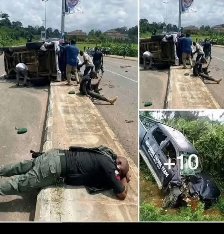 10 police officers were on Wednesday involved in a terrible accident while chasing a suspected “Yahoo Boy” (a term used to describe internet fraudsters) along the Benin-Sapele Expressway.