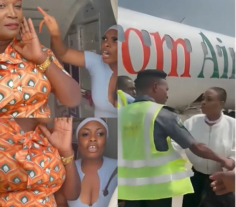 In a video posted online by an X user, @OHOgunbiyi, the lady who was dressed in a white top and black pant was seen slapping the hostess during a heated argument on the plane.